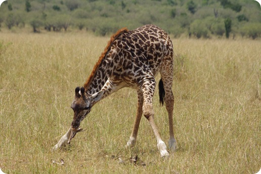 長頸鹿吃草時,得要前腳開開才方便吃草喔!
