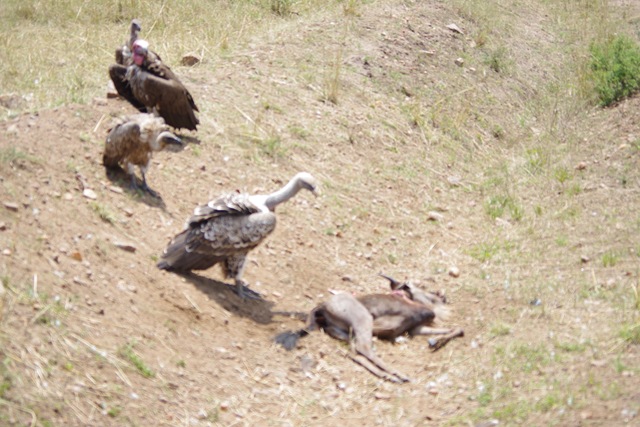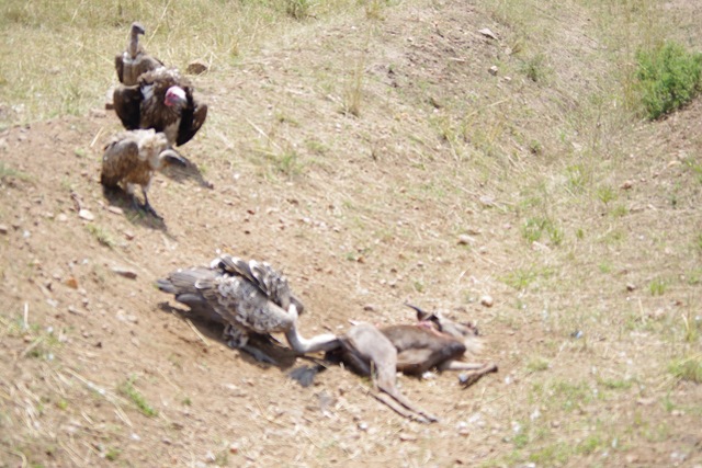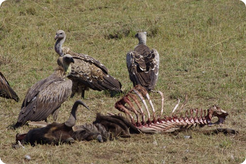 禿鷹-被稱為是草原上的清潔工,食物是動物的屍體,因此在野外看到一大群禿鷹時,就知道好戲上場囉!(照片中是牛羚的殘骸)